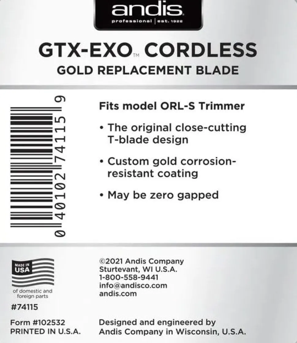 - Udskiftningsskær (justerbar) for Andis GTX-EXO™ Cordless Li Trimmer