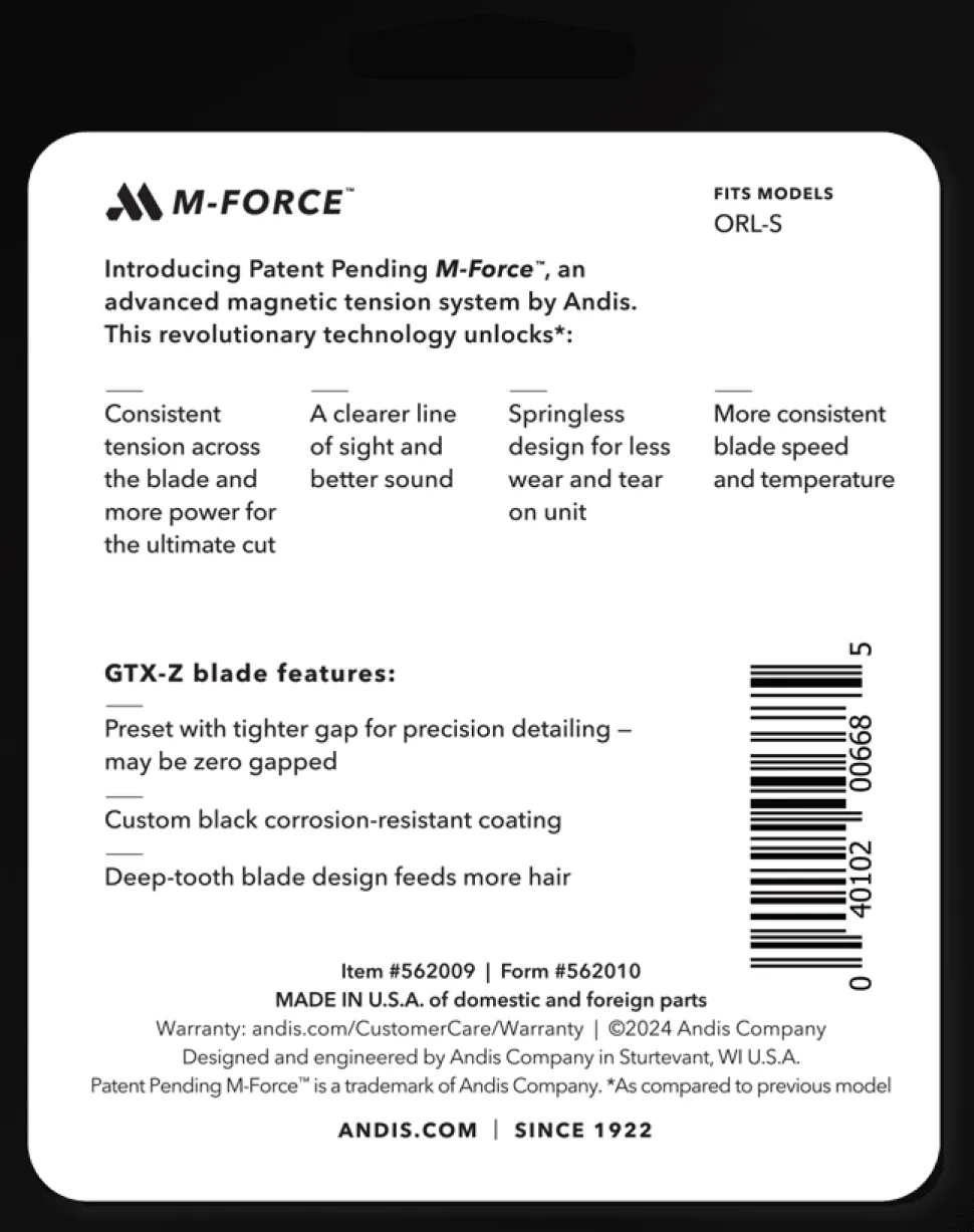 Præsenterer M-Force, et avanceret magnetisk spændingssystem fra Andis. Denne revolutionerende teknologi giver ensartet spænding over hele bladet og mere kraft til det ultimative snit. Den tilbyder en klarere synslinje og en bedre lydprofil. Den fjederløse konstruktion reducerer slid og belastning. Desuden sikrer den en mere ensartet bladhastighed og temperatur.