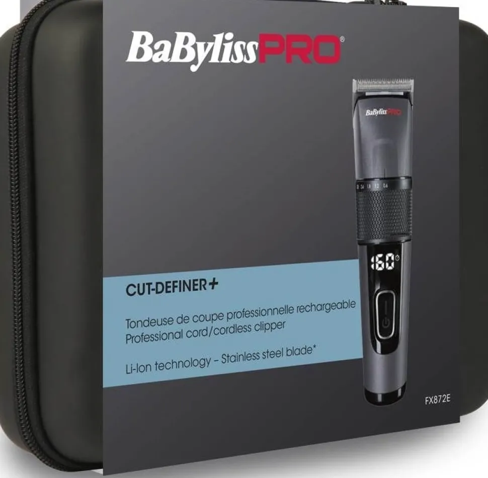 Den lette BaBylissPRO CUT-DEFINER+ er en professionel hårklipper med blad i rustfrit stål.