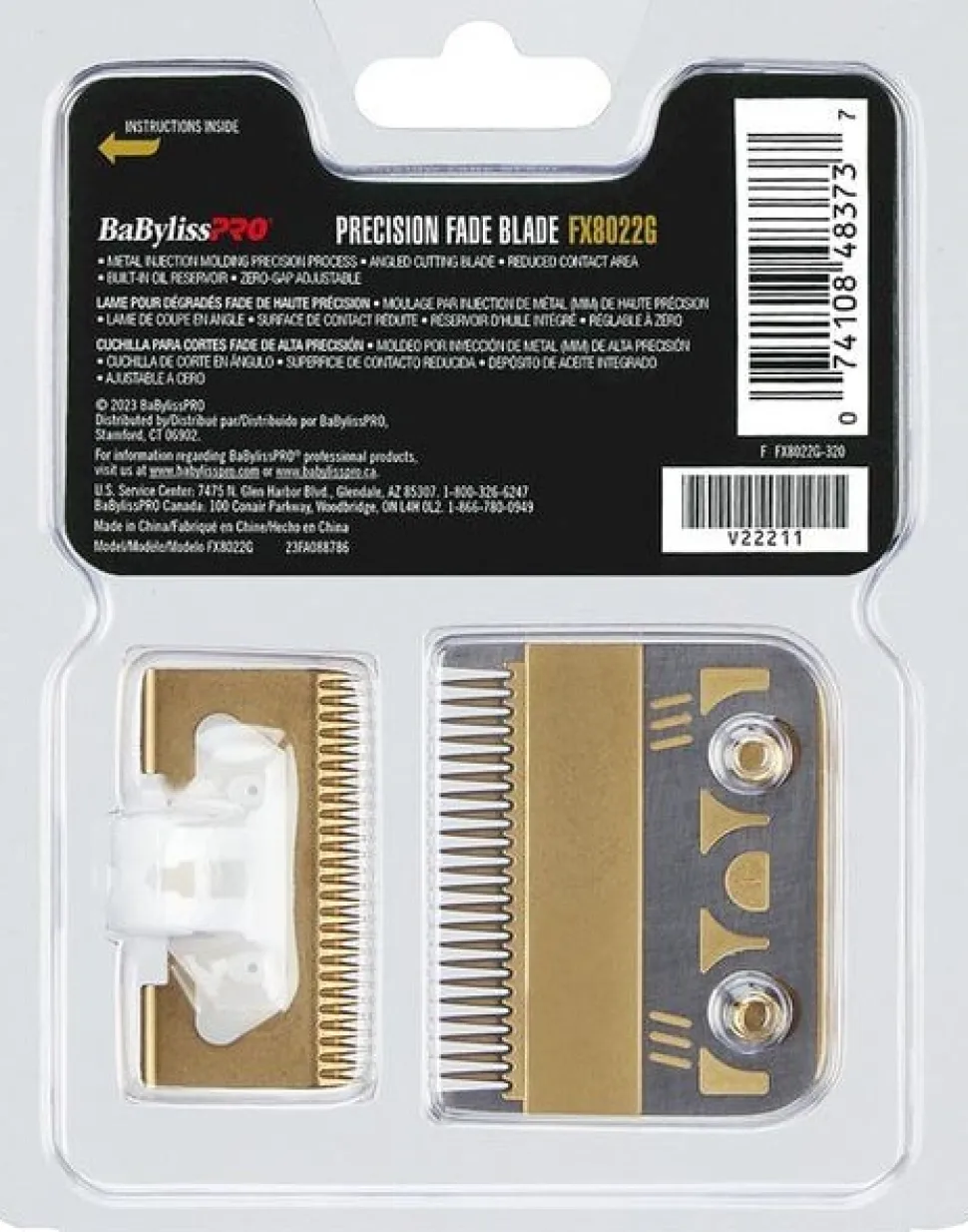 BaBylissPRO Replacement Hair Clipper Blue Titanium MIM Fade Blade FX8022BL er et skråskæreblaad, der giver ultra-præcise snit. Dette erstatningsblad passer til BaByliss PRO Metal FX Lithium Hair Clippers, Lo-PROFX Hair Clippers, LithiumFX Hair Clipper og FXONE Hair Clippers (inklusive GoldFX, BlackFX og Lo-PROFX). Den indbyggede oliebeholder sikrer glat og friktionsfri ydeevne, mens den reducerede kontaktflade opretholder en lavere bladtemperatur.