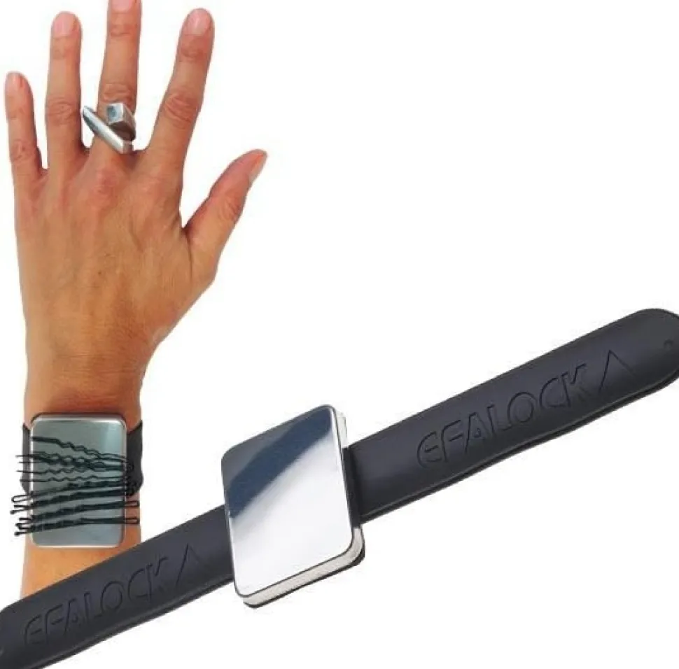 - Håndledsrem med magnetplade til fastgørelse af hårnåle og klips