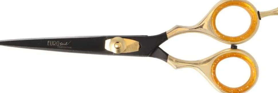 Elegant sort saks med et gyldent håndtag ergonomisk fortynder saks fra eurostil på 5,5″.
