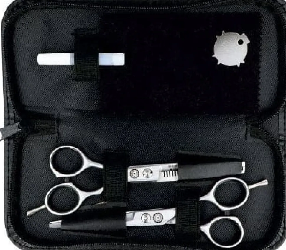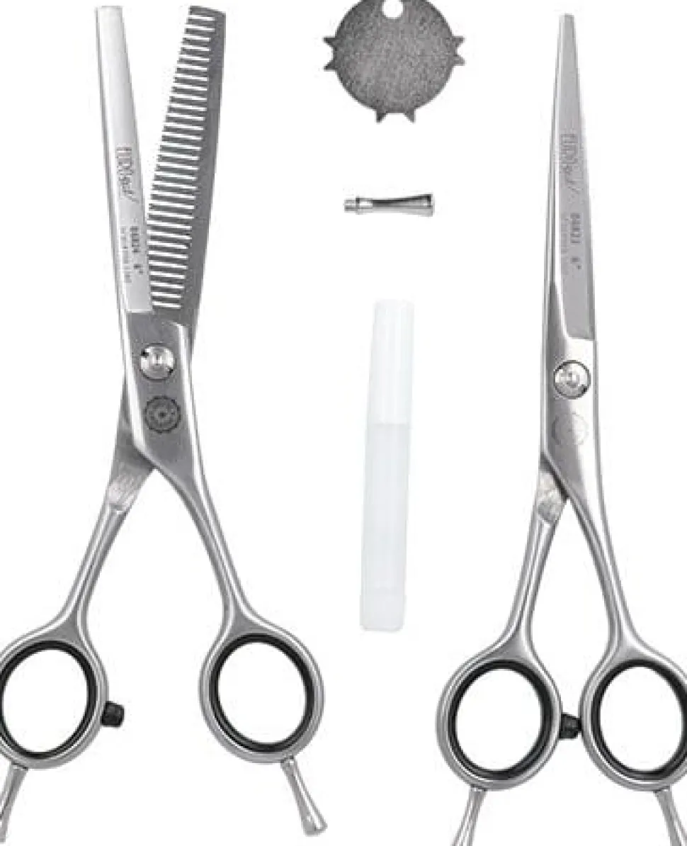 Sæt med professionelle frisørsaks + fortynder saks, buet form 6”