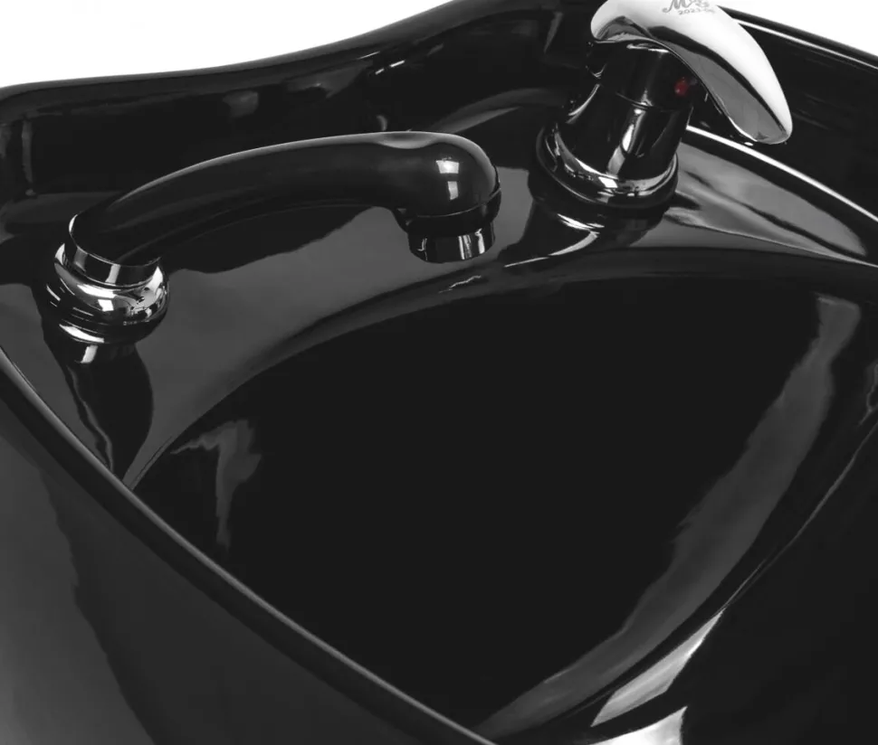 Dybdens keramiske vaskegryde i sorte nuancer muliggør behagelig og effektiv udførelse af en bred vifte af hårbehandlinger og reducerer vand- og produktstænk betydeligt. Materialet gør vaskeenheden holdbar, modstandsdygtig overfor misfarging og ridser samt let at rengøre. Den korrekt profilerede krave og let tilbagelænet rygstøtte giver støtte og komfort under vask, og den behagelige sorte plastoverflade hindrer klienten i at føle den kolde keramiske overflade.