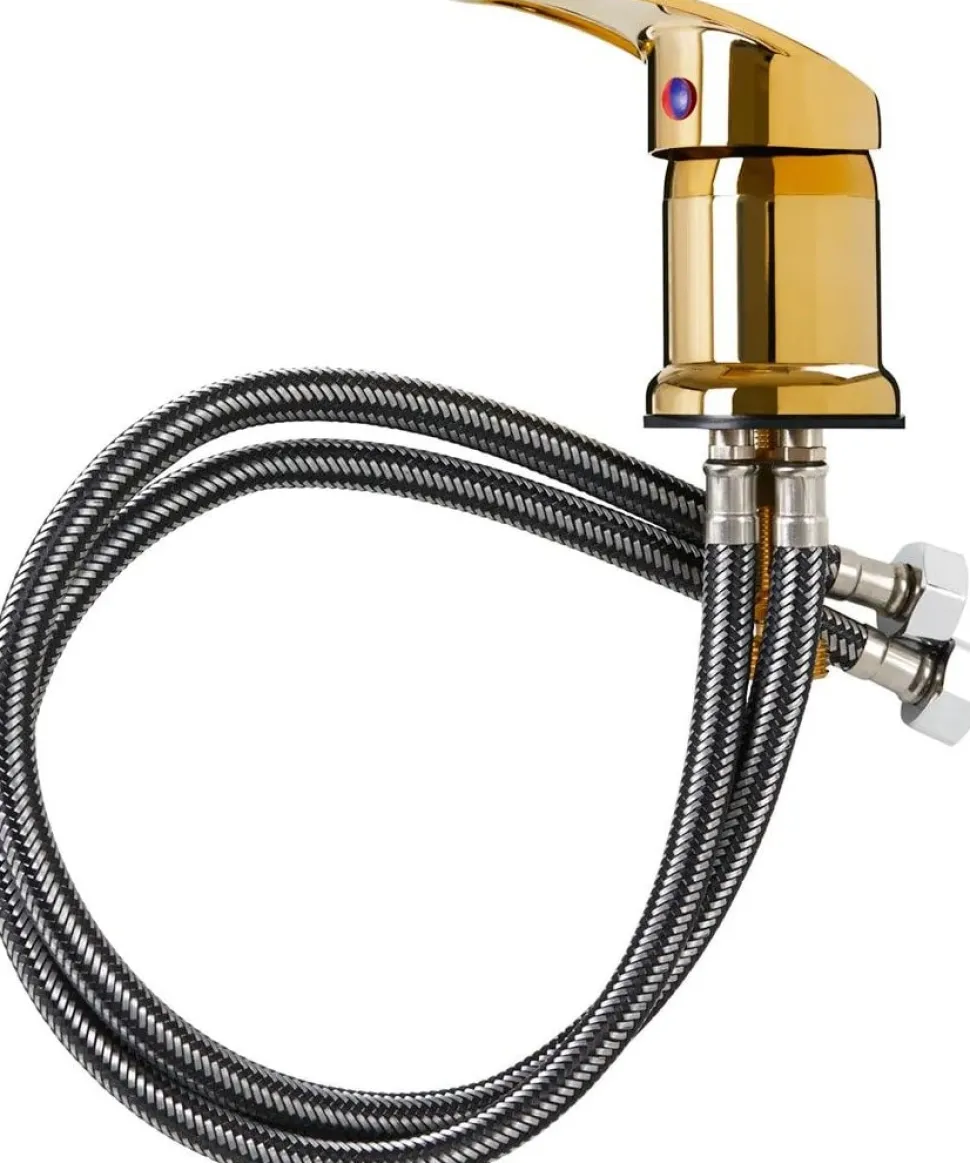 Modellen er udstyret med to tilslutningsslanger beskyttet af en stålfletning, hvilket giver ekstra holdbarhed og høj modstandsdygtighed over for slitage.
