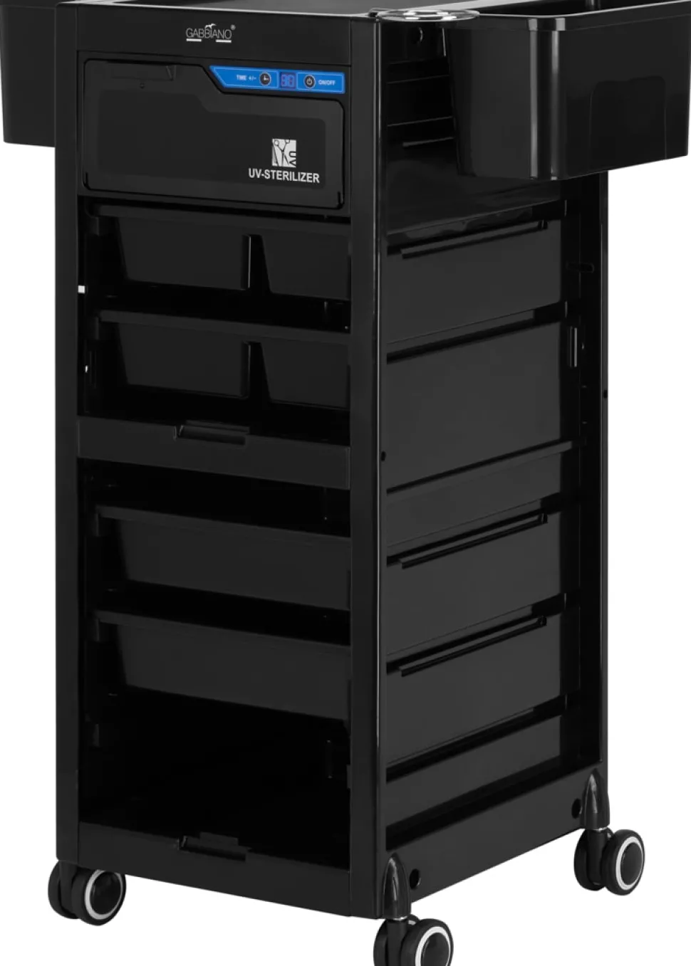 Gabbiano 68UV med UV-sterilisator er et ekstremt nyttigt redskab til skønhedssaloner, der gør det lettere at organisere arbejdspladsen og sikrer orden og systematik. Med en praktisk arrangement af produkter er de mest nødvendige værktøjer altid lige ved hånden. Den lukkede bagplade forhindrer skufferne i at blive trukket ud af den forkerte side, hvilket kan medføre skader på redskaberne indeni.