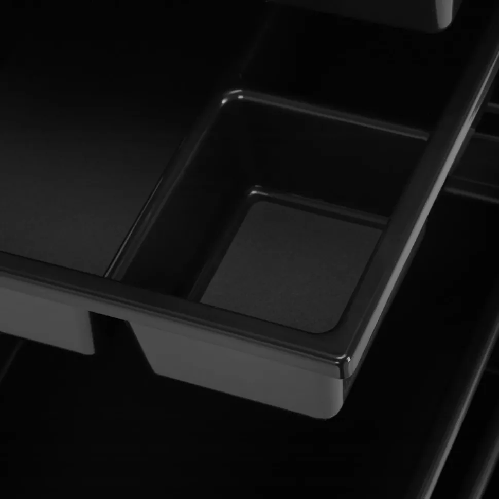 Den rummelige organizer er udstyret med et sæt opbevaringsbakker, der hjælper med at sikre orden i arbejdsområdet ved at sortere de værktøjer, der er nødvendige for frisørarbejdet. Sættet inkluderer seks beholdere: to uden rum, to med rum og to smalle og dybe. Arrangementet i organisatoren kan frit ændres efter behov, og et stort udvalg af forskellige typer skuffer giver dig mulighed for at segregere redskaberne efter eget ønske. Derudover kan de to dybeste beholdere placeres i forskellige højder på siderne af hjælpen, så redskaberne altid er på det rette niveau.
