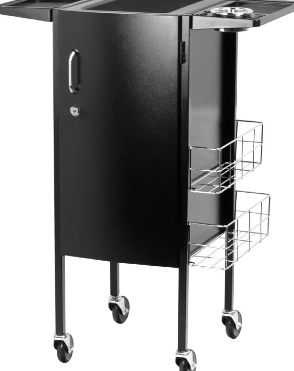Oplev denne elegante hårhjælper med et låsbart skab, designet til at være både praktisk og rummelig. Denne stilfulde løsning er ideel til enhver frisørsalon, hvor komfort og æstetik er i fokus.