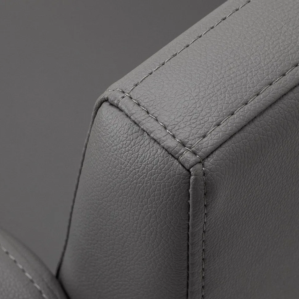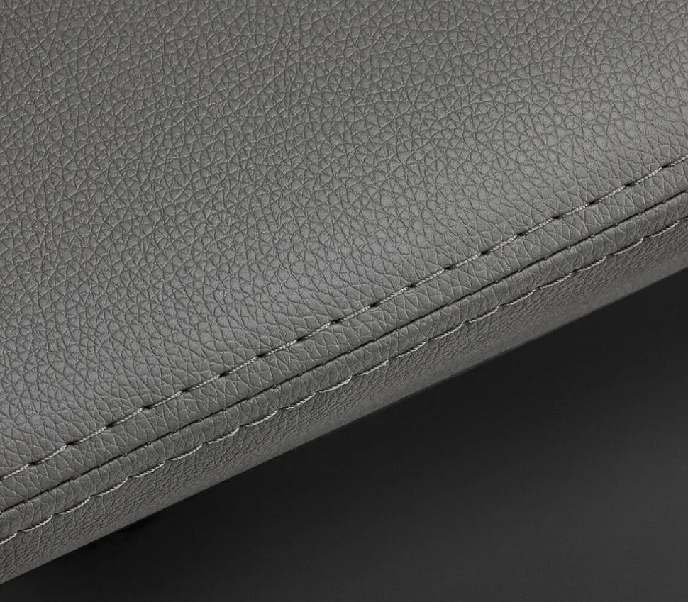 - Polstring i syntetisk læder (sorte nuancer) – slidstærkt, fugtresistent og nemt at vedligeholde.