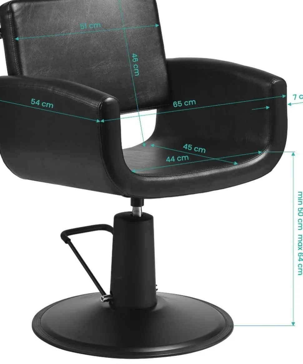Den avancerede hydrauliske mekanisme muliggør højdejustering mellem 50 og 64 cm, selv når den er optaget. Denne fleksibilitet understøtter en ergonomisk arbejdsstilling og reducerer belastningen under lange sessioner. En kontureret rygstøtte giver optimal rygstøtte, fremmer komfort for kunderne og let adgang for stylisterne – hvilket sikrer effektivitet, tilfredshed og en premium serviceoplevelse.