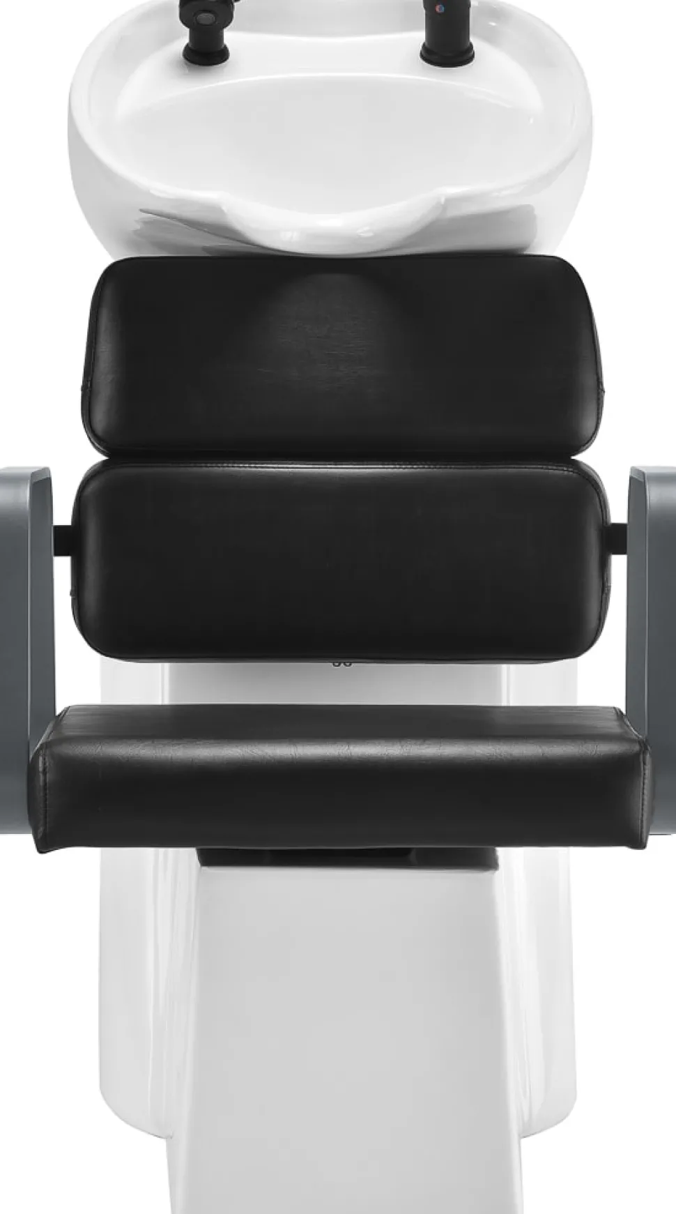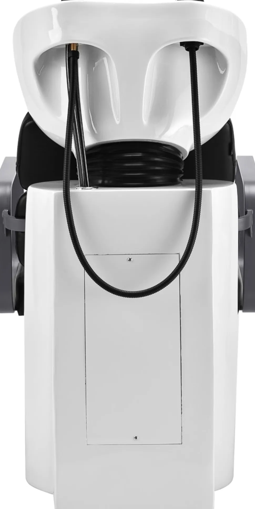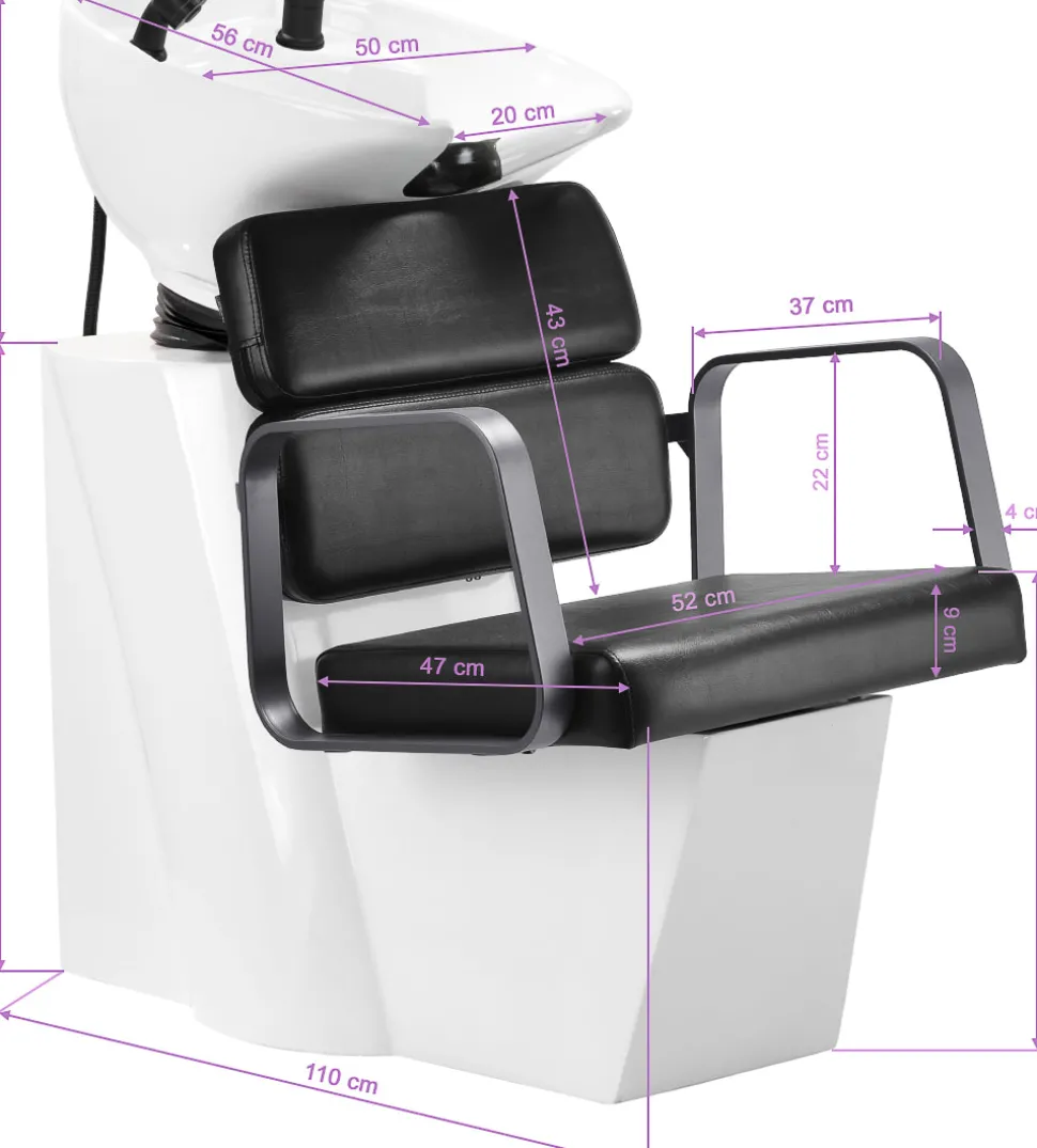 Den hvide keramiske vaskegryde er uden at sprøjte; dens passende dybde reducerer vand- og produktstænk betydeligt, hvilket giver behagelig og effektiv udførelse af et bredt spektrum af services. Vaskegryden kan vinkelsjusteres, så den passer til individuelle behov. Materialerne af høj kvalitet gør vaskeenheden holdbar, modstandsdygtig over for misfarvning og ridser, og nem at rengøre. En korrekt formet krave og en let tilbagelænet rygstøtte giver støtte og komfort under vask, og den behagelige sorte plast-overflade forhindrer klienten i at føle den kolde keramiske overflade.