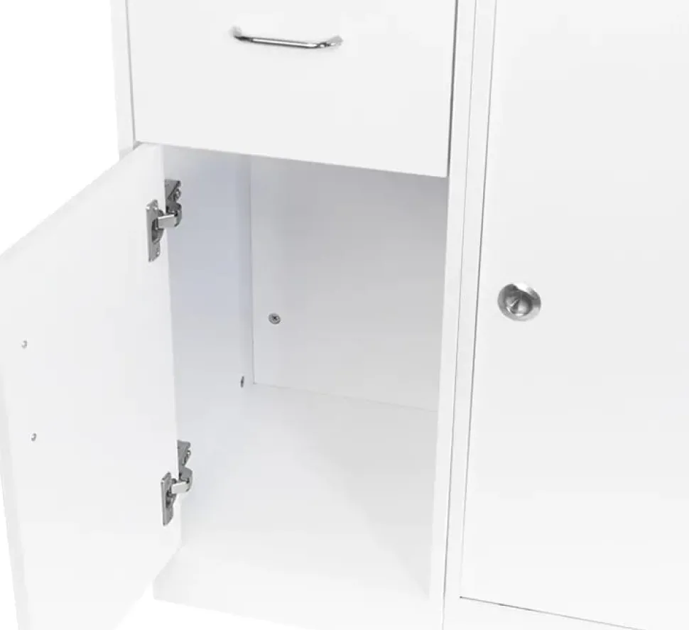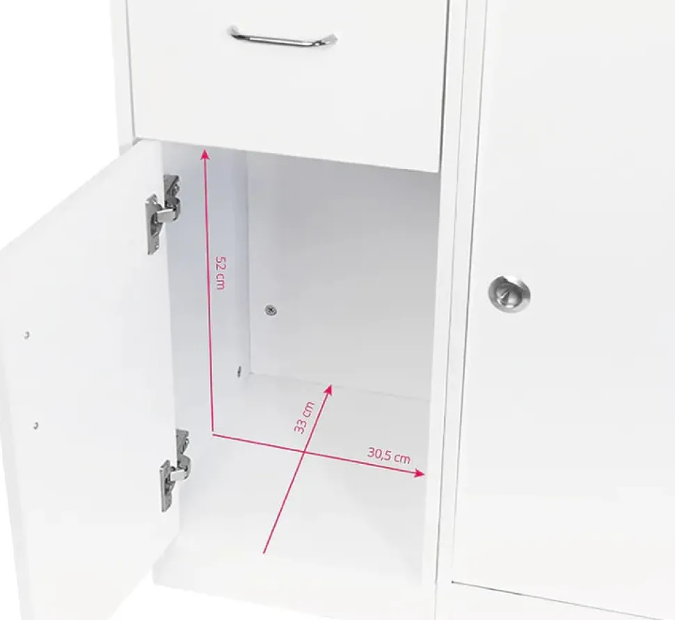 I sin indre del er der skabe og skuffer samt adgang til det midterste rum.