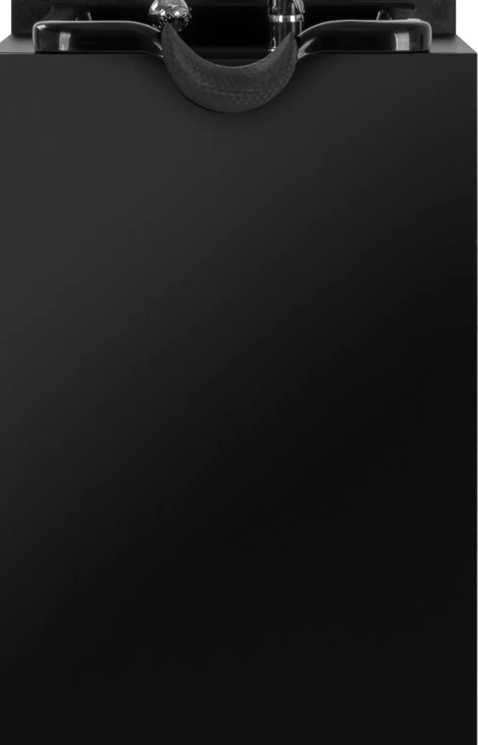 Den er fremstillet af møbelplader i dyb sort med kromdetaljer. Vaskeskålen er ergonomisk designet, hvilket giver kunderne en luksuriøs oplevelse.