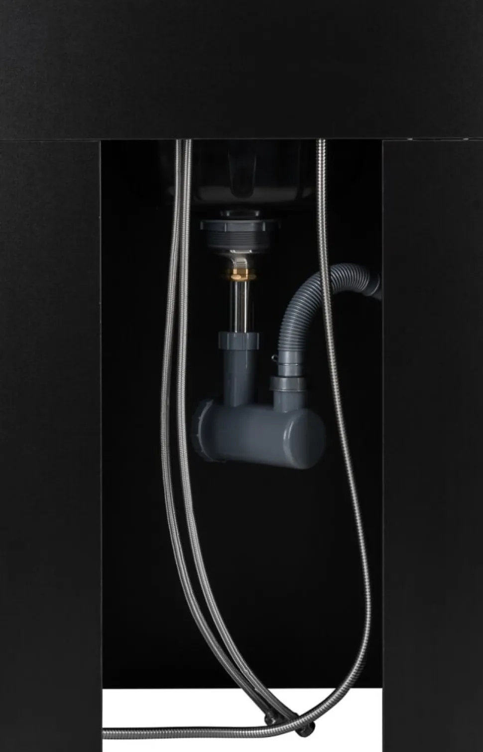 Stationen har en side-dør til let adgang til opbevaring og en æstetisk forbindelse til vandforsyningen, hvilket giver et ordentligt udseende. Den kompakte form passer perfekt til både store og små saloner.
