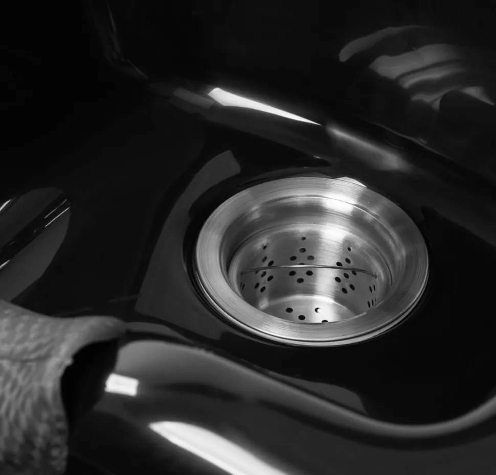 Gabbiano Barber Station (model 5023) er en luksuriøs og funktionel salonstation til hårvask, der kombinerer stil med komfort. Den dybe sorte vaskeskål er lavet af slidstærk plast, der gør den nem at rengøre og sikrer en behagelig hovedposition for kunden.