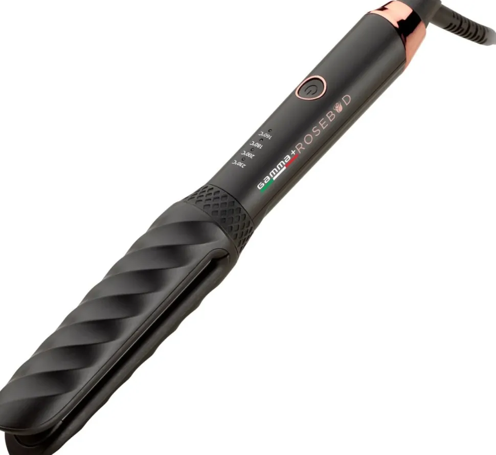 Gamma+ Rosebud er et revolutionerende stylingjern, der kombinerer to funktioner i ét instrument. Det eksklusive design med overfladeguide muliggør krølning, glattet hår og skabelsen af naturlige bølger.