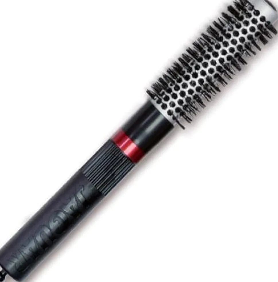 - Runde ionbørster med specialbørstearrangement og sømløs aluminiumcylinder forhindrer hårfladning og beskadigelse og reducerer tørretiden.