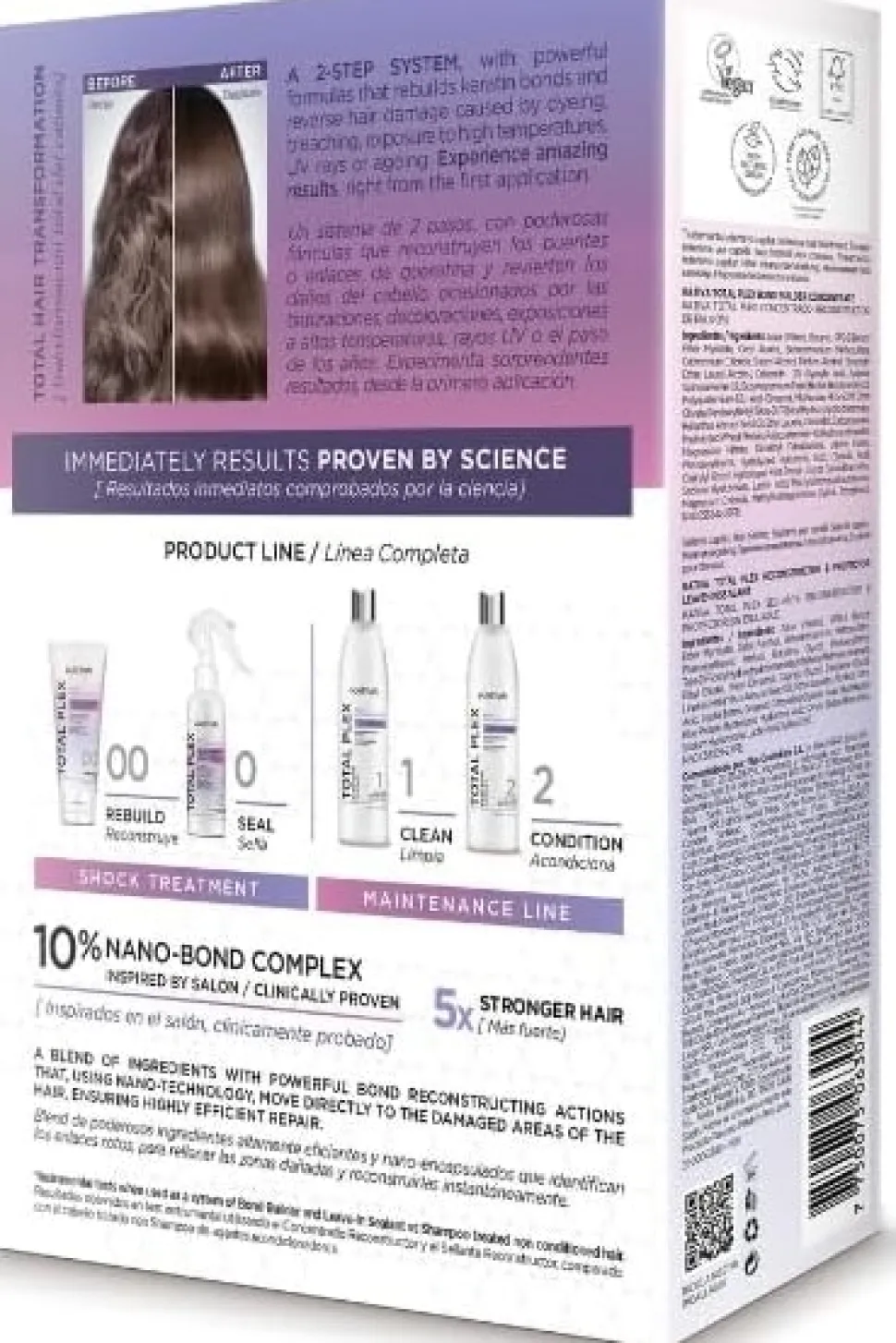 - 10% Nano – Bond Complex: En kombination af kraftfulde og nano-enkapsulerede ingredienser, der identificerer brudte bindinger og udfylder skadede områder for øjeblikkelig genopbygning.