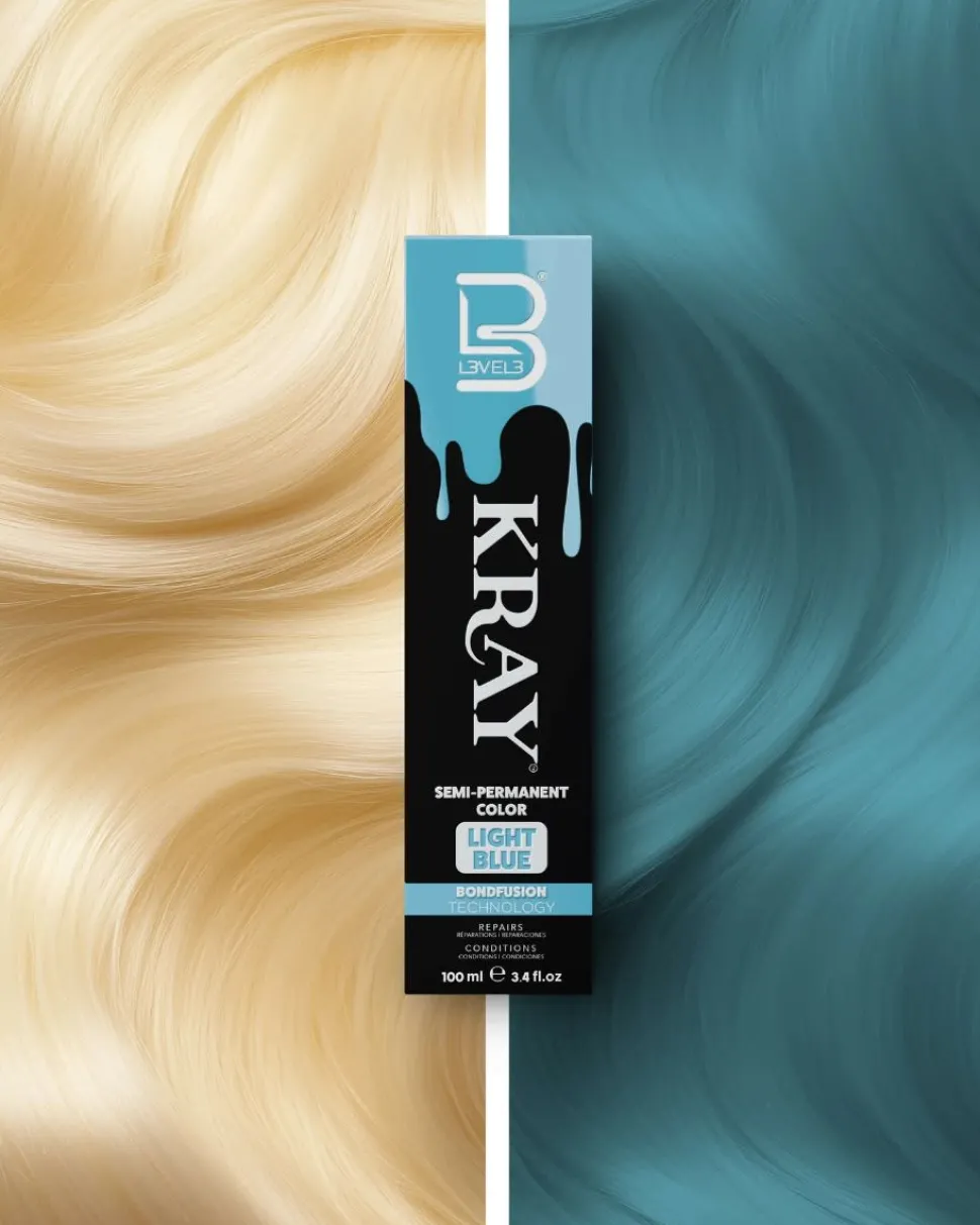 - L3VEL3 KRAY Semi-Permanent Color er din løsning for at skabe dristige, levende looks med lethed. Beriget med nærende ingredienser og BondFusion Technology, giver det dig friheden til at eksperimentere med en bred vifte af nuancer, mens dit hår forbliver sundt og beskyttet.