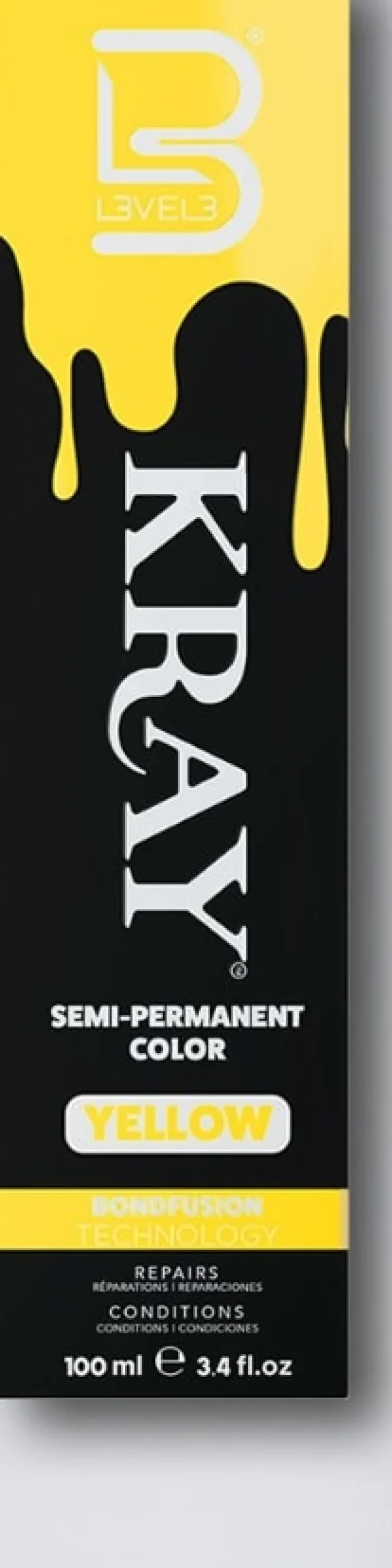 - L3VEL3 KRAY Semi-Permanent Color er din løsning for at skabe dristige, levende looks med lethed. Beriget med nærende ingredienser og BondFusion Technology, giver det dig friheden til at eksperimentere med en bred vifte af nuancer, mens dit hår forbliver sundt og beskyttet.
