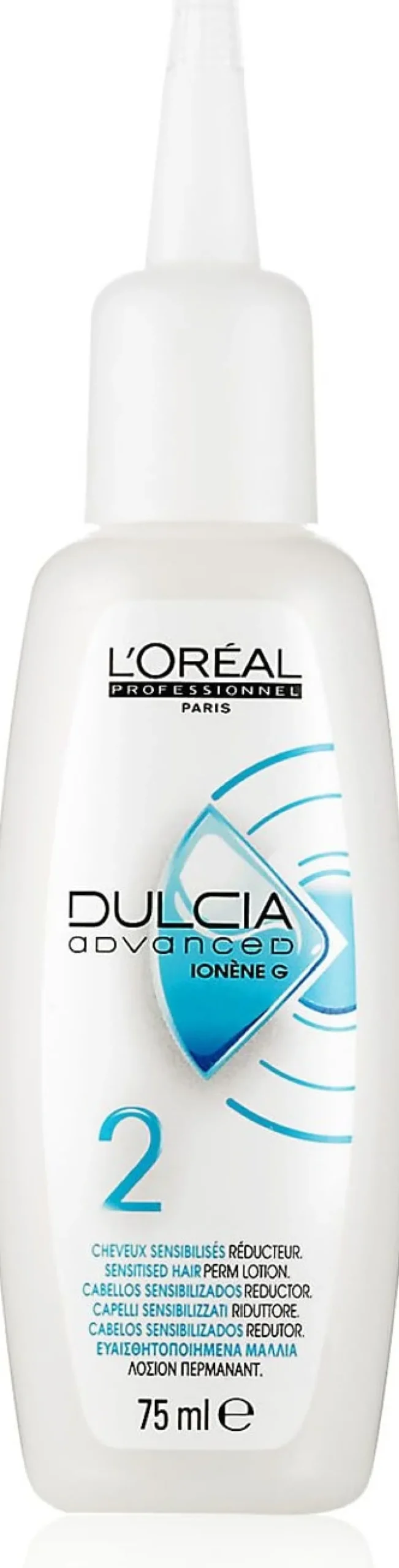 L’Oréal Professionnel Dulcia Advanced Perm Lotion Emulsion for perm indeholder teknologi System Ionéne G, som beskytter og plejer håret. Den indeholder ekstrakter af kornproteiner, der fornyer hårfibrene, det beskyttende stof Ionene G og den kationiske polymer, der udglatter håret. Brug denne emulsion sammen med L’Oréal Dulcia Advanced Neutraliser. Nyd smukke krøller med produkterne fra udvalget af hårkosmetik L’Oréal Professionnel Dulcia Advanced.