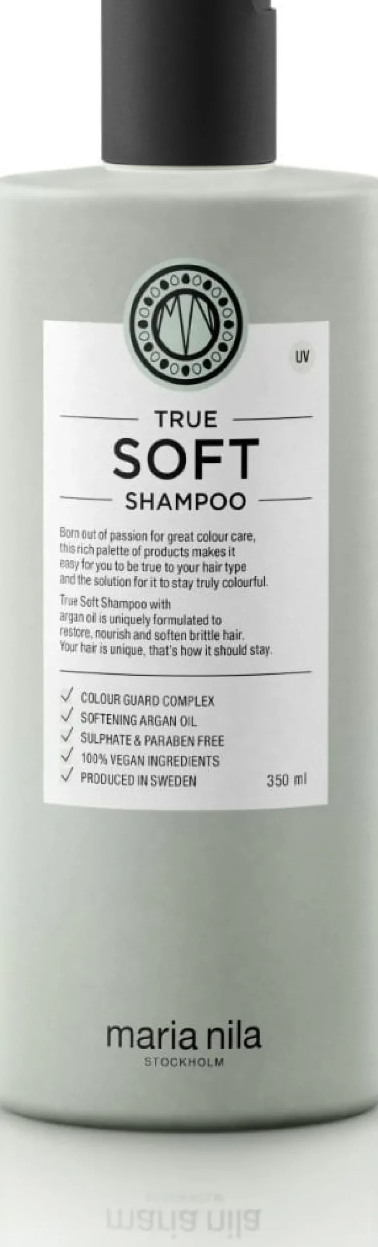 Maria Nila True Soft Shampoo er et mildt shampoo designet til tørt og skrøbeligt hår. Det blødgør, fugter og styrker håret, samtidig med at det reducerer frizz og statisk elektricitet. Den glatgørende arganolie, antioxidanter og fedtsyrer bevarer fugten og styrker dit hår. True Soft Shampoo har en frisk duft med en unik blomsteraroma af lilje, jasmin og rose. Dens Color Guard Complex beskytter farven ved at modvirke UV-stråling og frie radikaler.