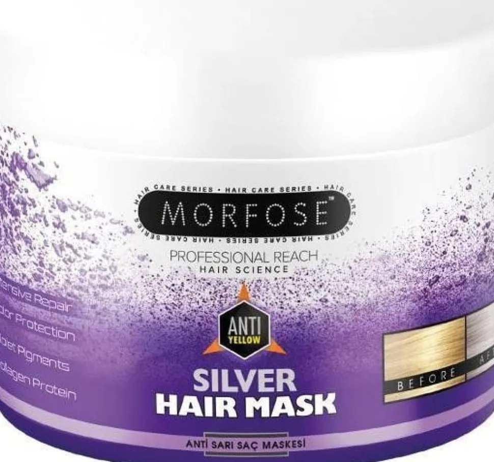 Morfose Silver Hair Mask 500 ml hjælper med at give en glat og fugtet følelse til tørt, farvet og beskadiget hår. Med UV-filteret i formlen neutraliserer den orange refleksioner og giver dyb pleje til håret.