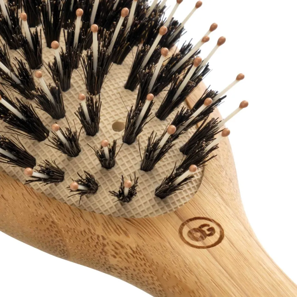 - Blandingen af vildsvin- og nylonbørster redder håret grundigt men skånsomt.