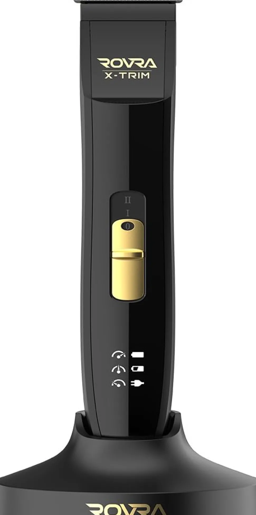 ROVRA X‑TRIM Trimmer, ladestander, oplader, rengøringsbørste, 50 ml klippe-/smøreolie, sæt med styrekamme