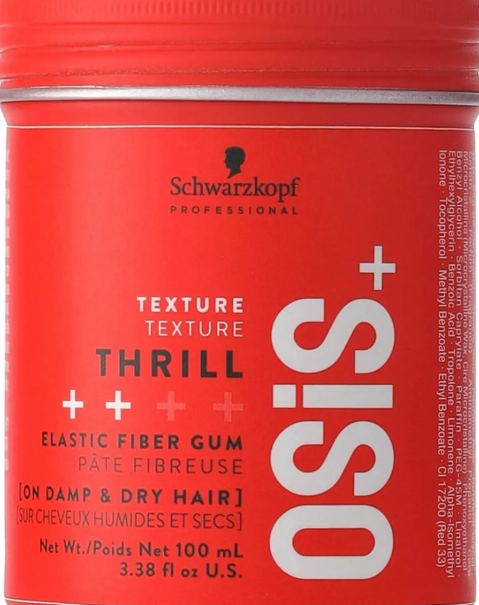 OSiS Thrill er en hårgelé til fleksible frisurer. Det giver stærk teksturkontrol med fordelen ved at være fleksibel og omformbar. Takket være sin fleksible tekstur giver den elastiske hårgelé med mega-elastiske fiberbindinger glans, fleksibel styling og en reformerbar hårstruktur.