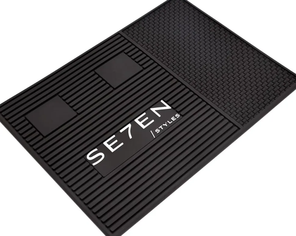 Se7en Styles Magnetic Mat er en fantastisk måtte til at opbevare alle dine redskaber, læg alle dine redskaber et sted under en barbering. Brug de 2 magnetiske trimmer/klipper pladser til at opbevare dine maskiner. Maskinerne skal vendes på hovedet så bladet på maskinen sættes fast magnetisk på måtten.