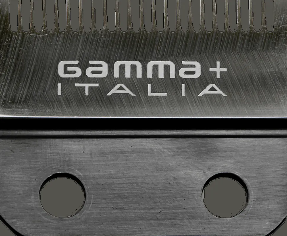 SÅDAN UDSKIFTES KNIVET: Drej trimmeren til positionen OFF. Fjern de 2 skruer fra det faste blad på din trimmer. Udskift med en ny klinge i huset, og juster den nye klinge over de to huller med Gamma+-logoet mod dig. Spænd forsigtigt begge skruer tilbage på bladet, og sæt låget på igen. Tænd din trimmer for at sikre dig, at bladet ikke er løst, før du trimmer håret.