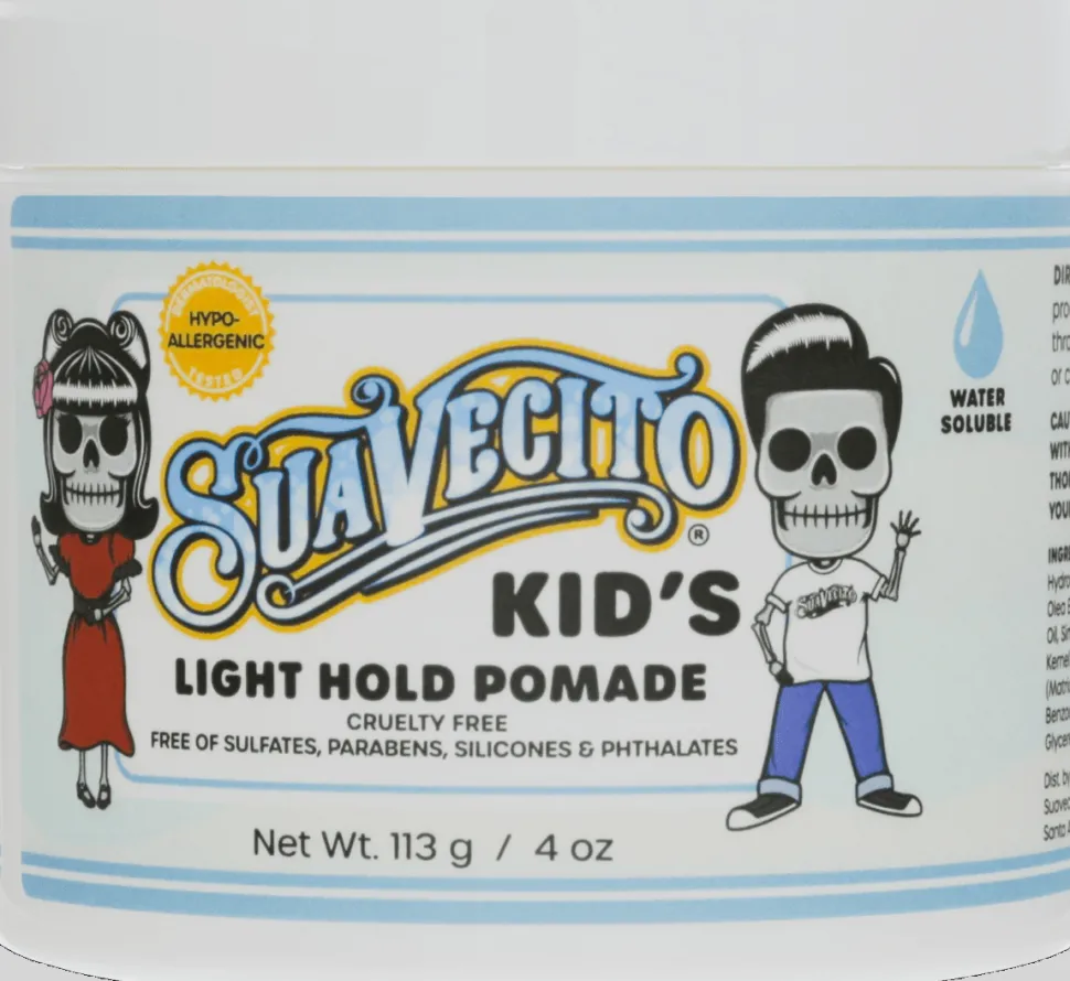 Lad dit lille barn udforske og udtrykke deres unikke stil med Suavecito Kids Pomade. Vores dermatologisk testede, hypoallergeniske formel sikrer en blid berøring på sart hud. Fri for sulfater, parabener, silikone og ftalater giver det bekymringsfri styling for forældre. Det er formuleret uden gluten, nødder, mejeriprodukter eller soja for at imødekomme forskellige følsomheder – så du kan føle dig godt tilpas med at style dit barn ubesværet og bevidst.