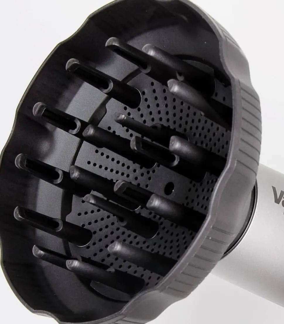 Diameter på 12,7 cm: Diffuseren har en optimal størrelse med en diameter på 12,7 cm, som gør den ideel til at rumme større sektioner af hår, hvilket sikrer en hurtigere og mere effektiv tørring.