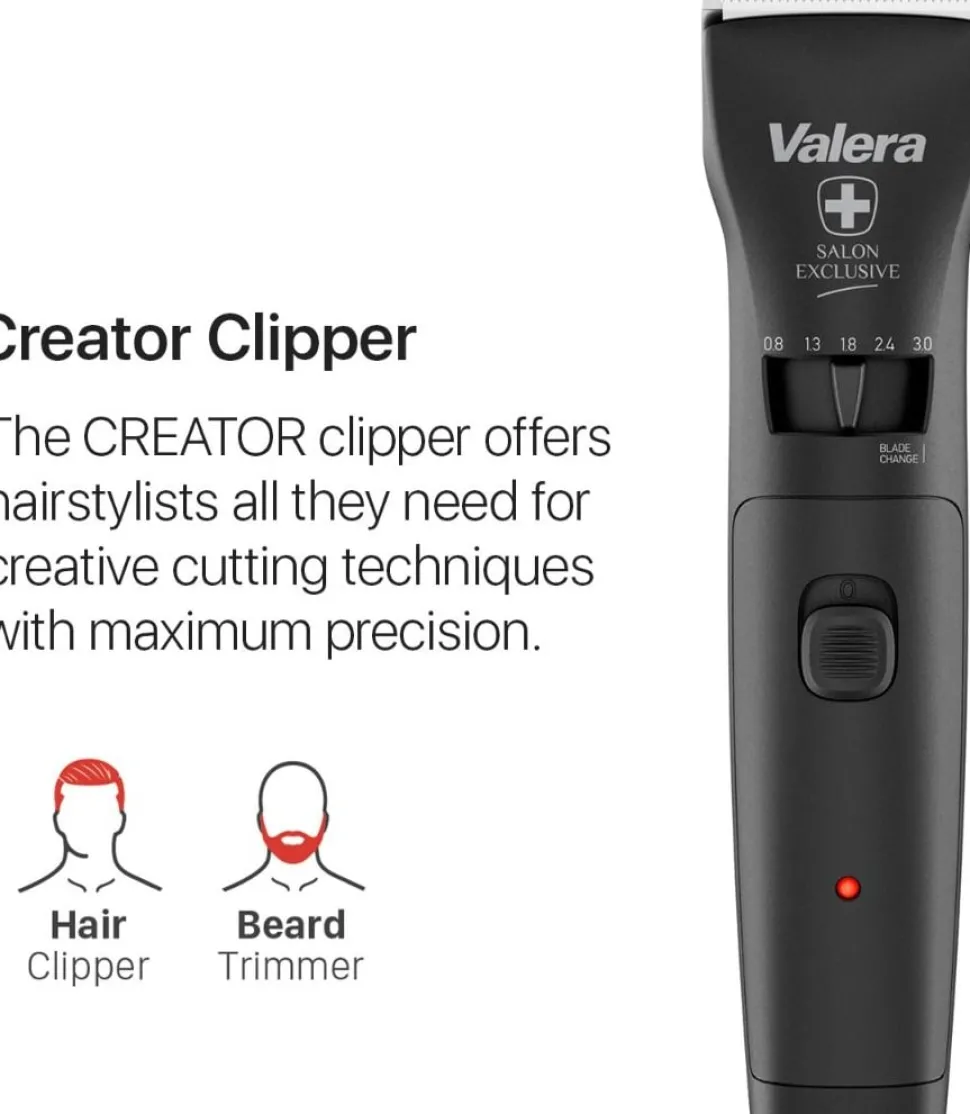 Creator, den elegante schweizisk fremstillede hårklipper, vil stimulere frisørernes kreativitet. De diamantslebne klinger er lavet af japansk højkulstofstål, som er kendetegnet ved særlig hårdhed og høj slidstyrke. Fem skærelængder (0,8, 1,3, 1,8, 2,4, 3,0 mm) kan bekvemt justeres med en skydekontakt. Seks ultra-robuste, superfleksible premium kamme til yderligere skærelængder på 3, 6, 9, 12, 16 og 20 mm er også inkluderet. Den seneste generation af Li-Ion LFP-batteri scorer med en driftstid på op til 120 minutter. Speciel elektronik til at beskytte batteriet maksimerer antallet af opladnings- og afladningscyklusser og reducerer standby-forbruget til næsten nul. Den professionelle DC-motor med højt drejningsmoment med konstant hastighed på 5500 rpm muliggør ubesværet arbejde selv i tykt og tæt hår.