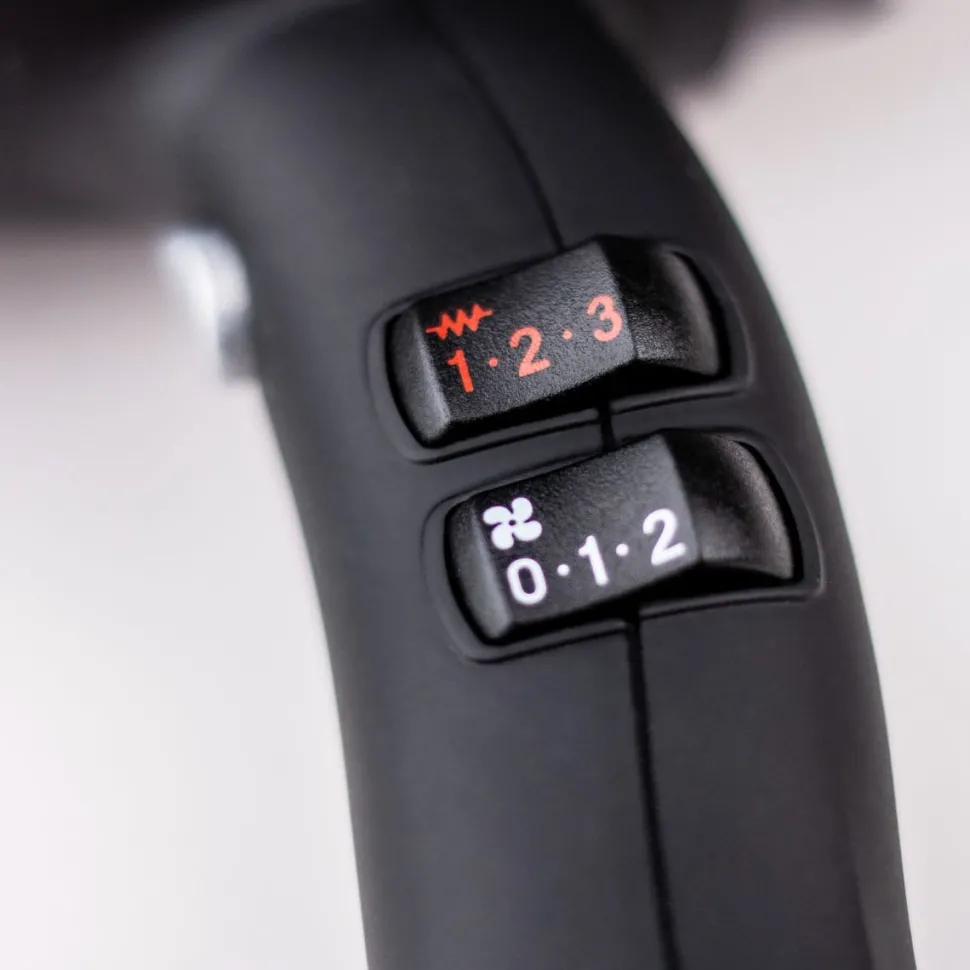 Master Pro 3200 professionelle hårtørrer er et mesterværk af effektivitet. Udstyret med en professionel og holdbar AC-motor og optimeret med Valeras Smart Airflow-teknologi, leverer den kraftfulde tørreresultater med minimal støj. Det ergonomisk designede værktøj ligger komfortabelt og sikkert i hånden. Et integreret SANIFY System sikrer et sikrere og sundere miljø i salonen. Backstop-systemet forhindrer hår i at blive fanget i ventilatorenheden, hvilket beskytter motoren mod nedbrud. Master Pro garanterer pålidelig service, hurtig tørring og præcis styling.
