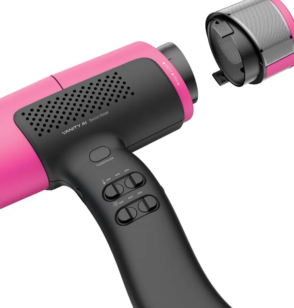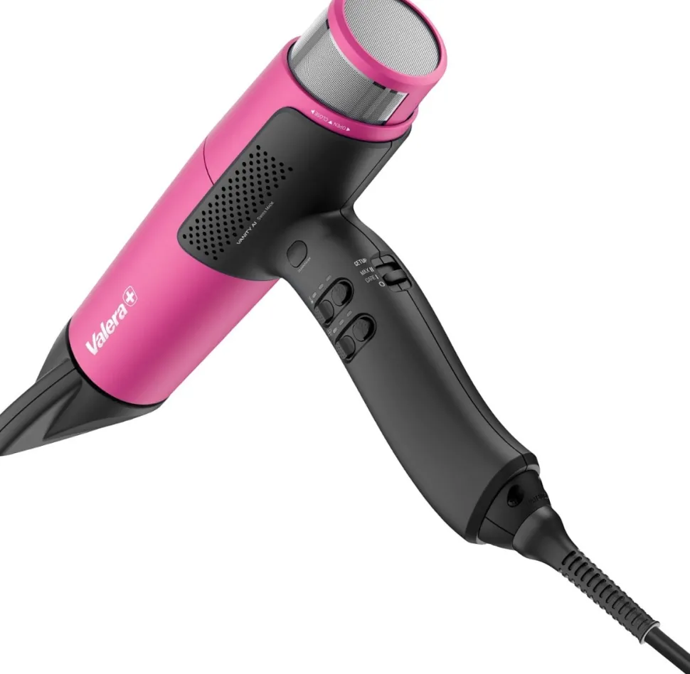 Vanitycare AI er en ultralet, ergonomisk og hurtigtørrende hårtørrer, der er specielt udviklet til professionelt brug. Med den innovative ABT – Air Boost Technology, der inkluderer luftindtagsåbninger over håndtaget, skabes en stærk multiplikatoreffekt, der øger luftstrømmen. Den integrerede auto-rengøringsfunktion rengør automatisk luftindtagsfilteret med et enkelt tryk på knappen, hvilket sikrer pålidelig beskyttelse mod forurening.
