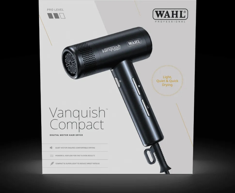 Vanquish Compact kombinerer kraft, præcision og lethed i et elegant design – et ideelt valg for den professionelle stylist eller den kvalitetsbevidste bruger, der ønsker salonresultater hver dag.