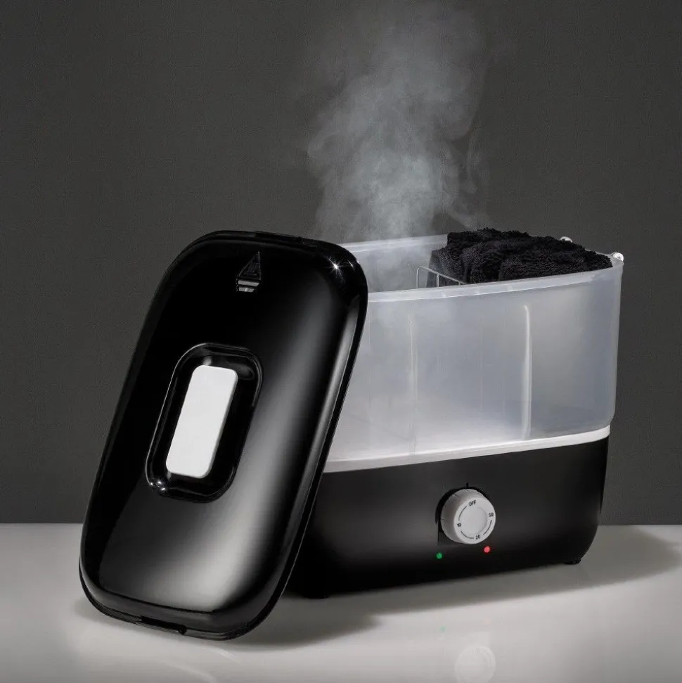 Towel Express Electric Steam Håndklædevarmer er et innovativt og uundværligt værktøj til din salon. Den er let og kompakt og udstyret med en aftagelig håndklædebakke. For at opvarme dine håndklæder har du en justerbar timer. Det virker med damp: det tager kun 10 sekunder at frigive det og i løbet af kort tid er dine håndklæder klar til brug.