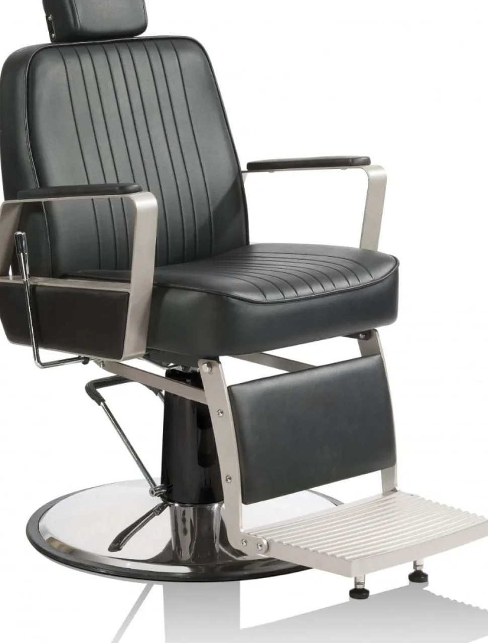Løft salonoplevelsen med Graffiti Grispardo. Den robuste, forkromede stålramme og luksuriøse beige Sky øko-læder forener stil og funktionalitet. Med justerbar nakkestøtte, ryglæn med håndtagsbetjent vippefunktion og solid rund stålbase får dine kunder maksimal komfort ved klip, barbering og styling.